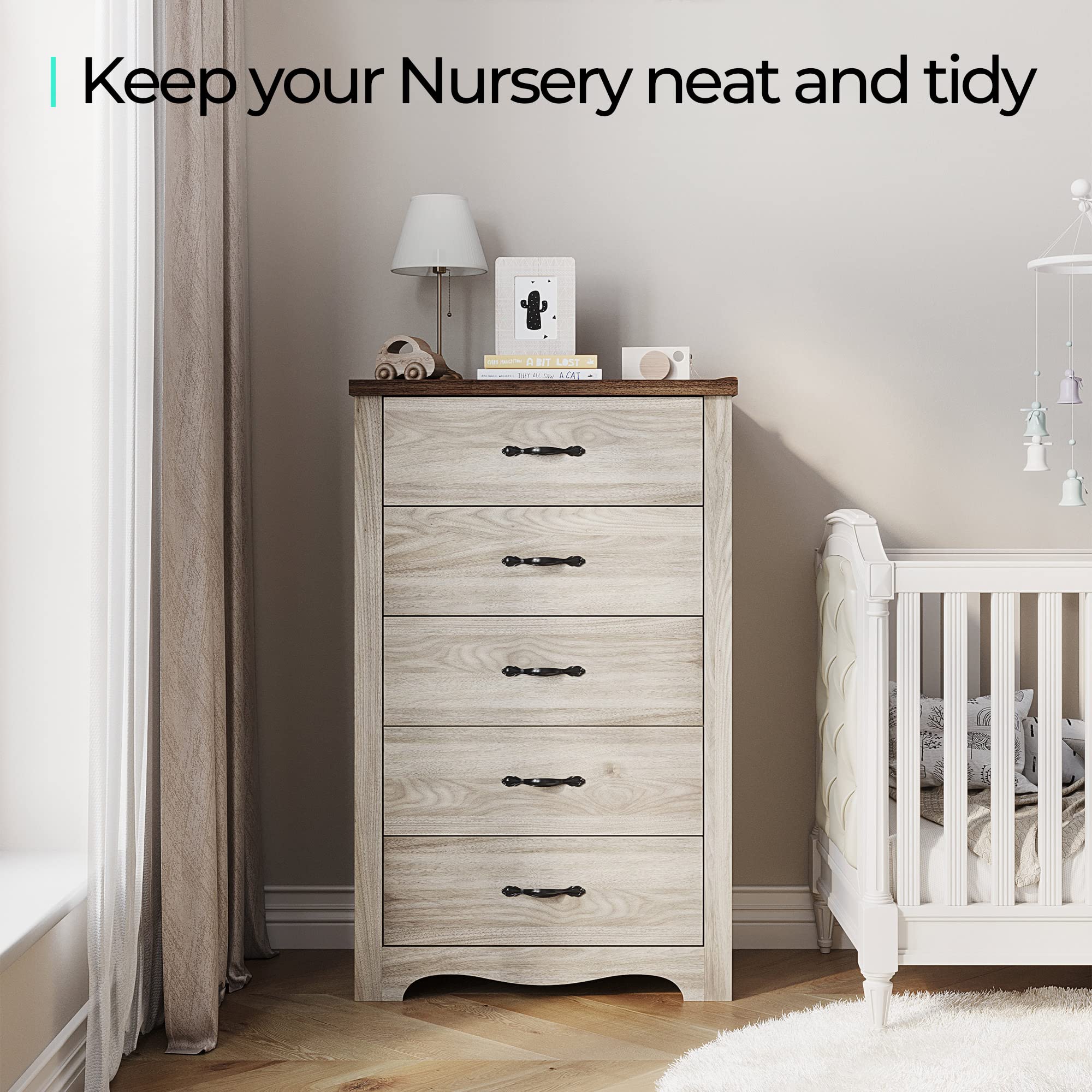 LINSY HOME White Dresser, 5 Drawer Dresser for Bedroom, Tal Dresser with Foldable Drawer Dividers, Wood Chest of Drawer as Baby Dressers for Nursery ...