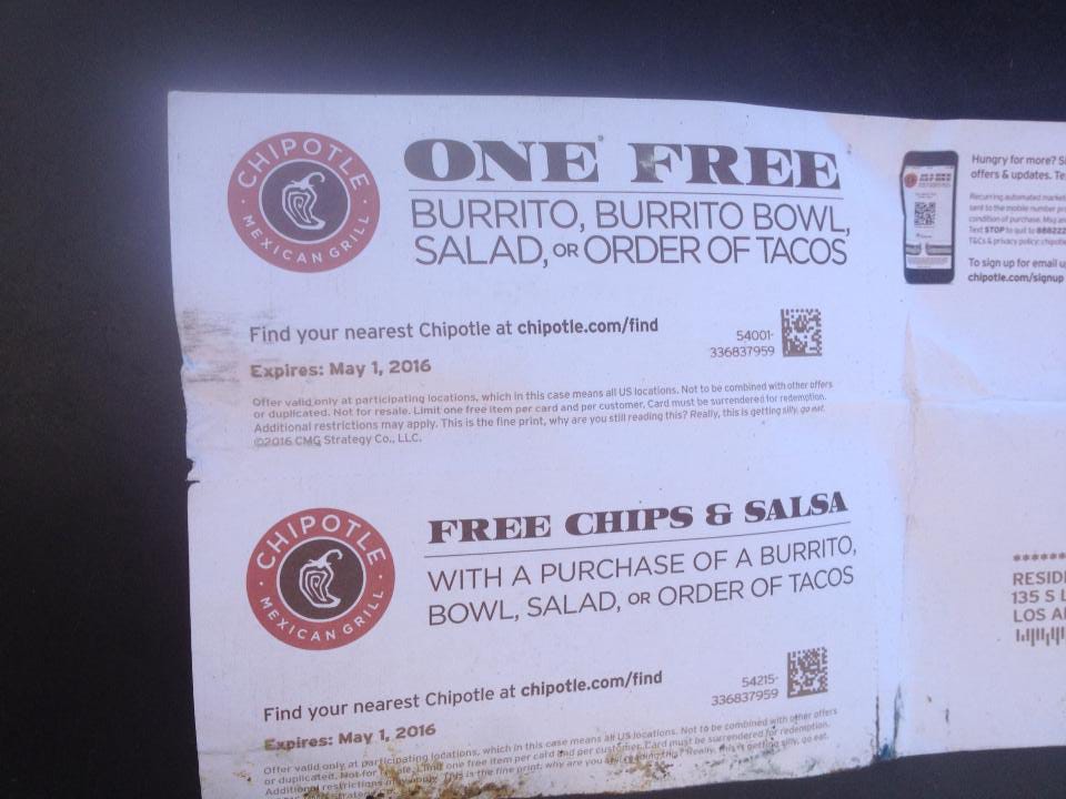 Free chipotle burrito coupon